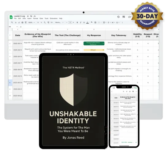 Unshakable Identity™: The Complete 21-Day Identity Reset System. A step-by-step process to cut the rubber band of your old identity, end panic spirals, and rebuild your internal baseline so you stay calm, grounded, and unshakeable no matter how she shows up.